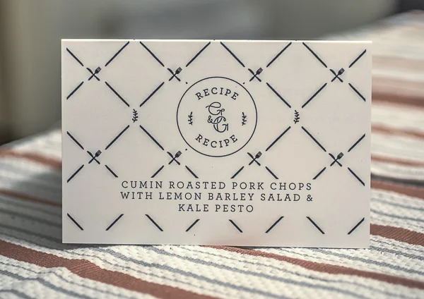 Cumin Roasted Pork Chops with Lemon Barley Salad & Kale Pesto